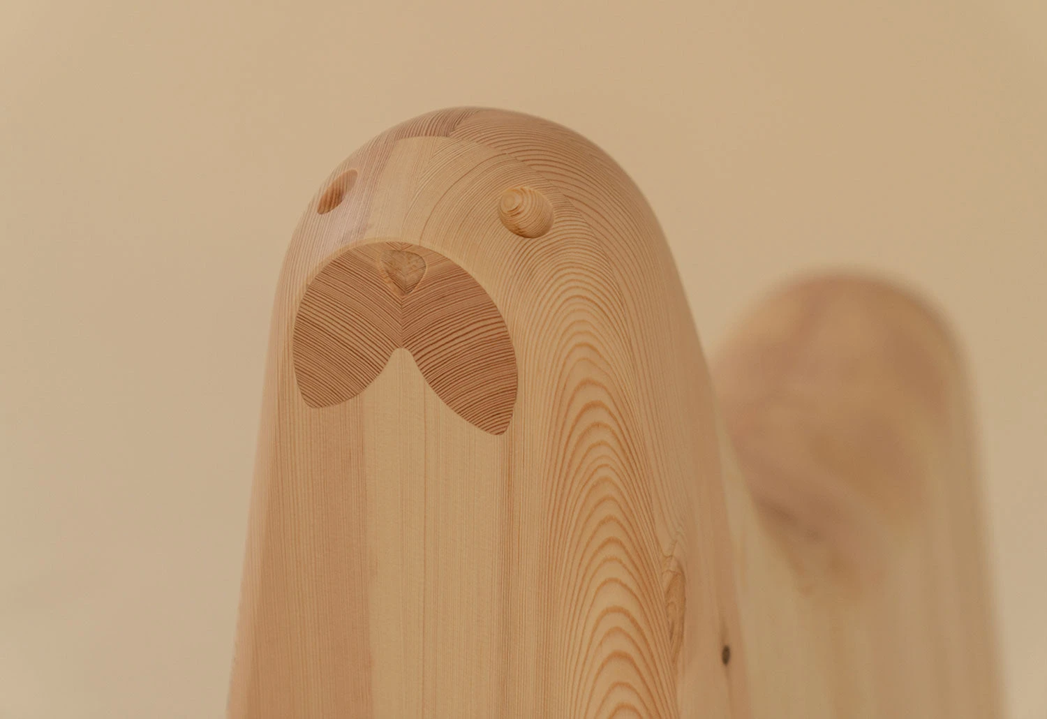 The exultant character has been skilfully milled from solid pine with the unique knots and grains of the pinewood used to emulate the Norppa seal’s distinctive circular markings on its skin. Vaarnii’s expert artisans have carefully chosen particular cuts of wood for their properties, selecting a darker section of pine to form the contrasting whiskers and certain grain sections to create shallow contours for the eyes.