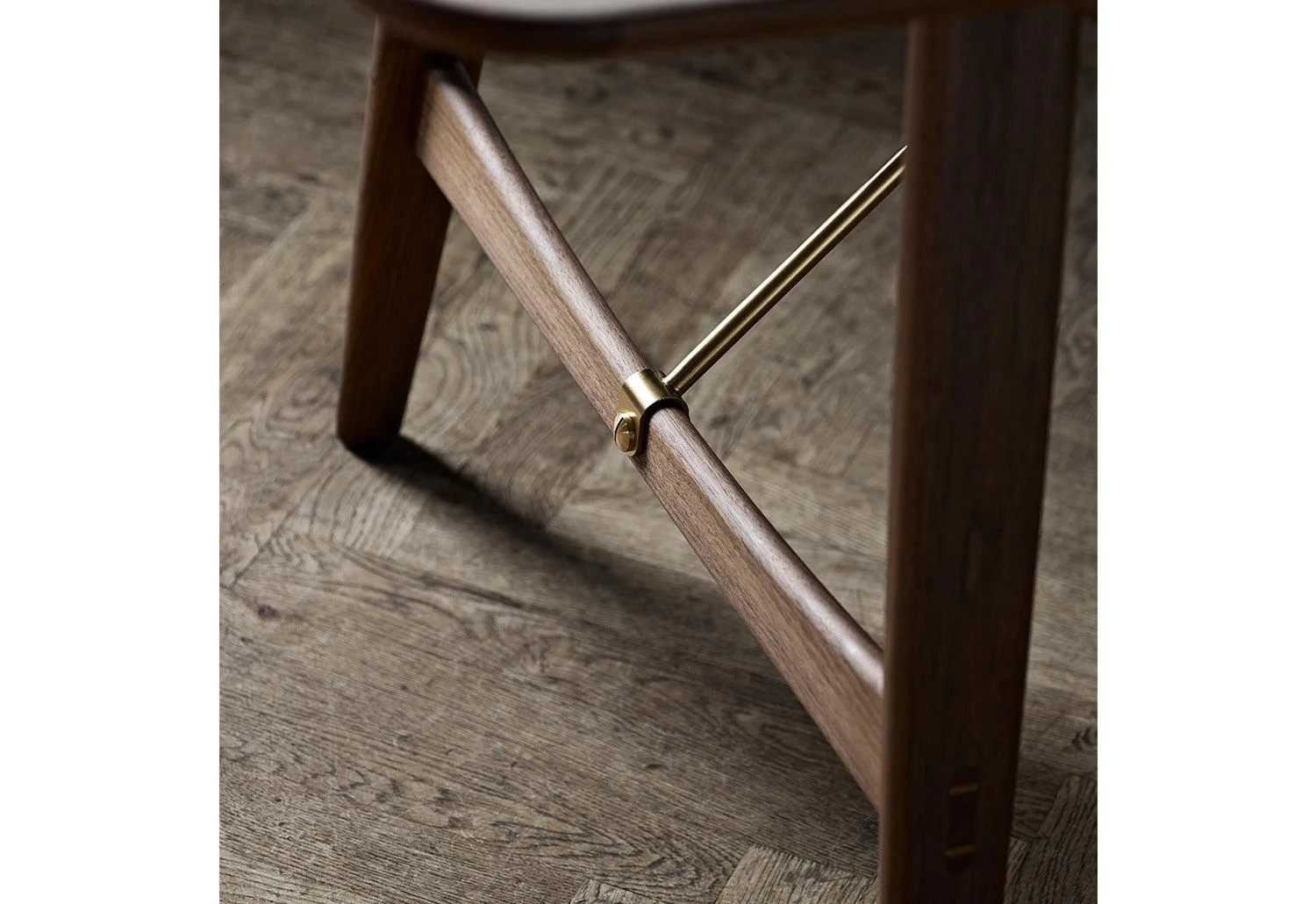 The table has a slightly narrow top and features rounded corners and edges. Signature tenon joints on the legs are finished with contrasting wood wedges to highlight the quality of craftsmanship. In addition to the impressive woodwork, the BM1160 table’s sturdiness is reinforced by the diagonal brace metal bars connecting the tabletop and frame.Â