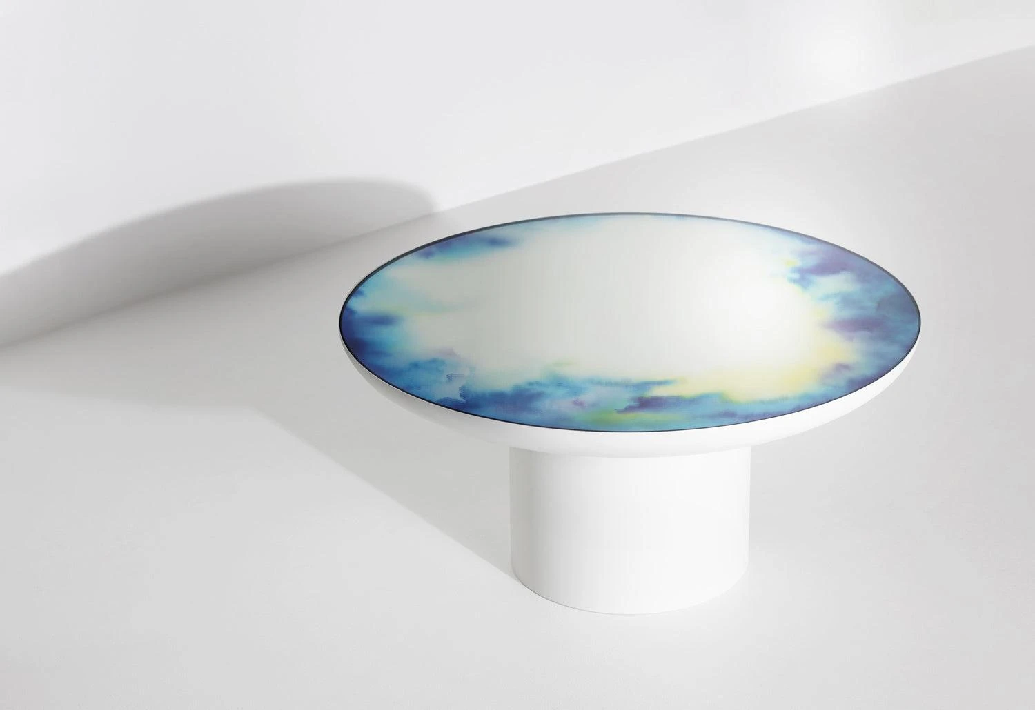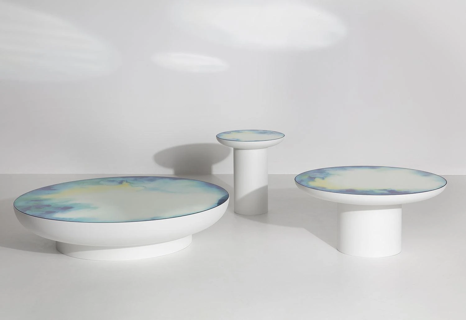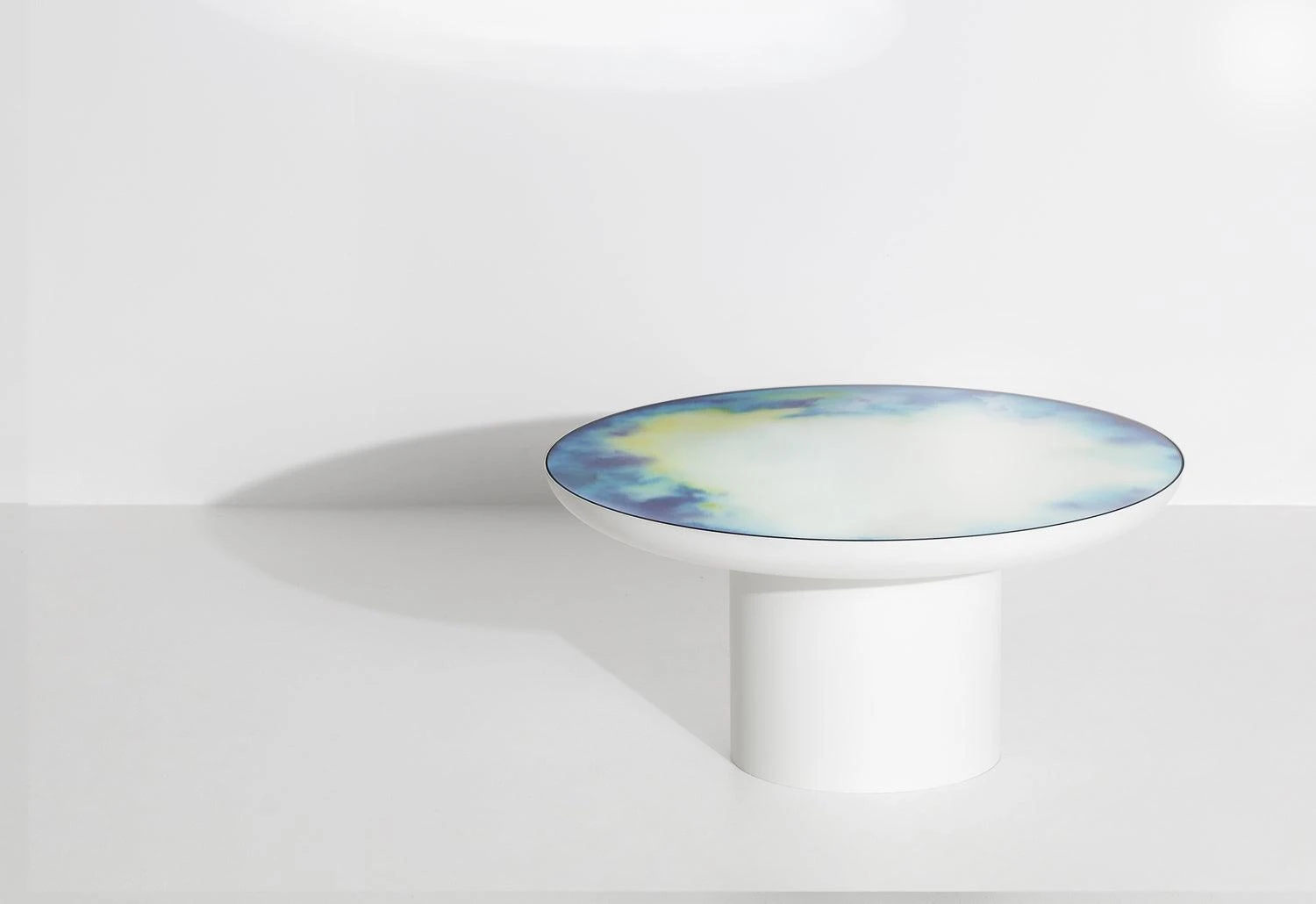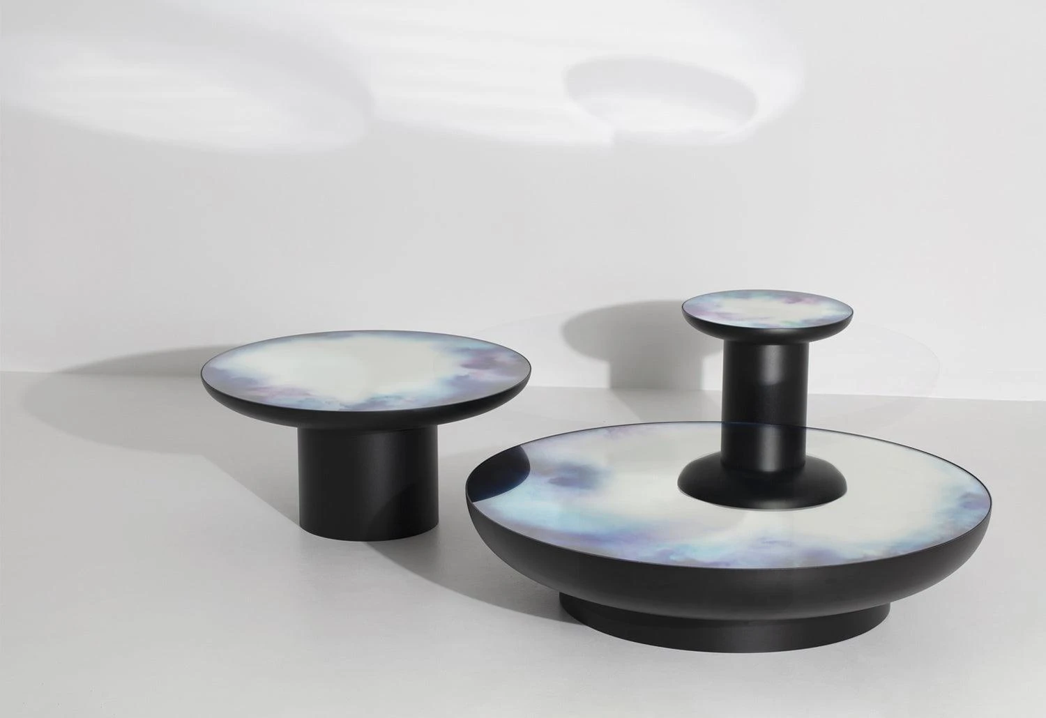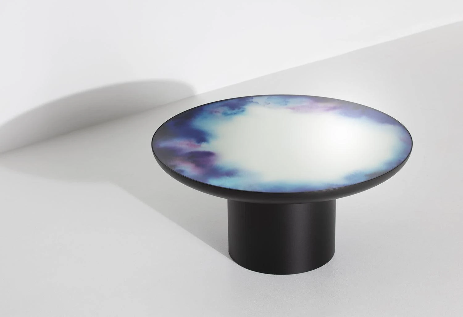 A sticking table collection, with a deep coloured pigmentation, inspired by makeup or paint palettes and antique mirrors. Inspired by Constance Guisset’s original Francis mirror design from 2012, the Francis table combines ceremonial shapes and a mirrored surface.
