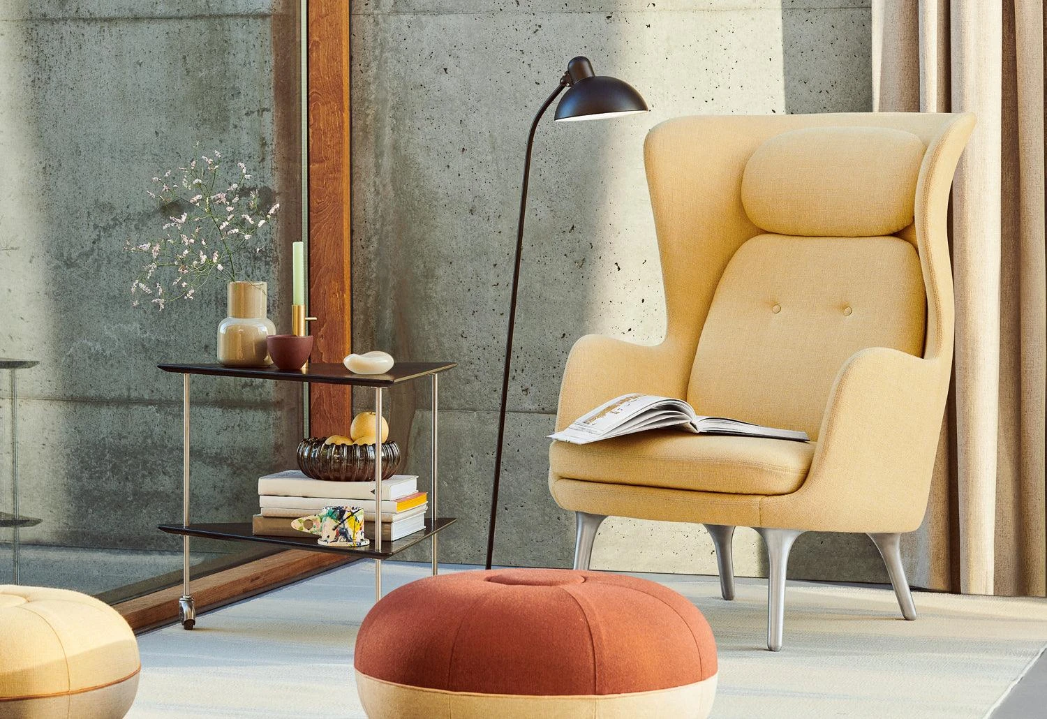 The angular mobile table was originally designed by Arne Jacobsen as an elegant serving trolley for his tea.Â