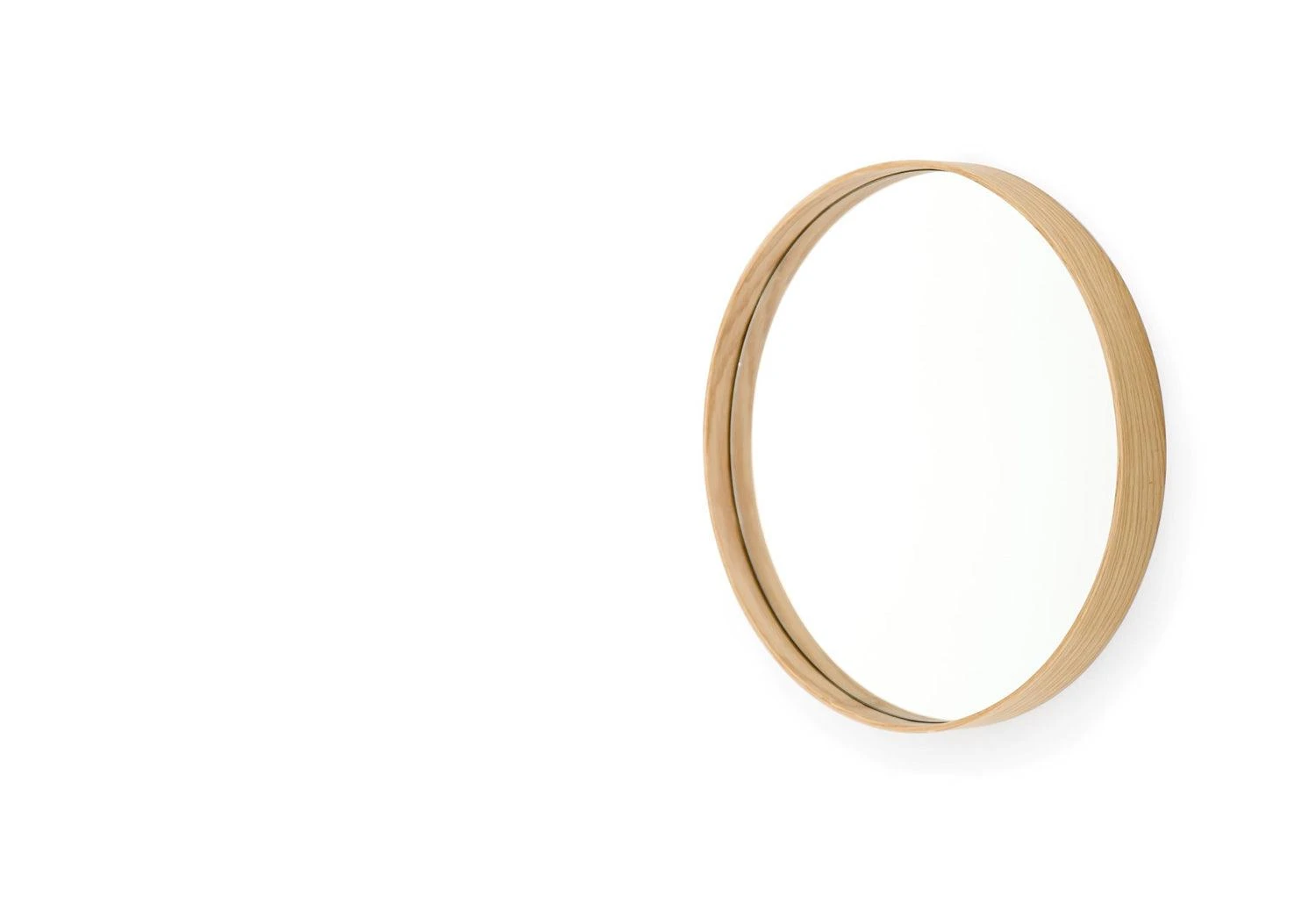 The minimal Glance round wall mirror is characterised by a slender-edged oak frame with a deep side profile. Its generous proportions bring light to any space, elegantly appearing to float, thanks to the adept hanging fixture that creates space between the frame and wall.