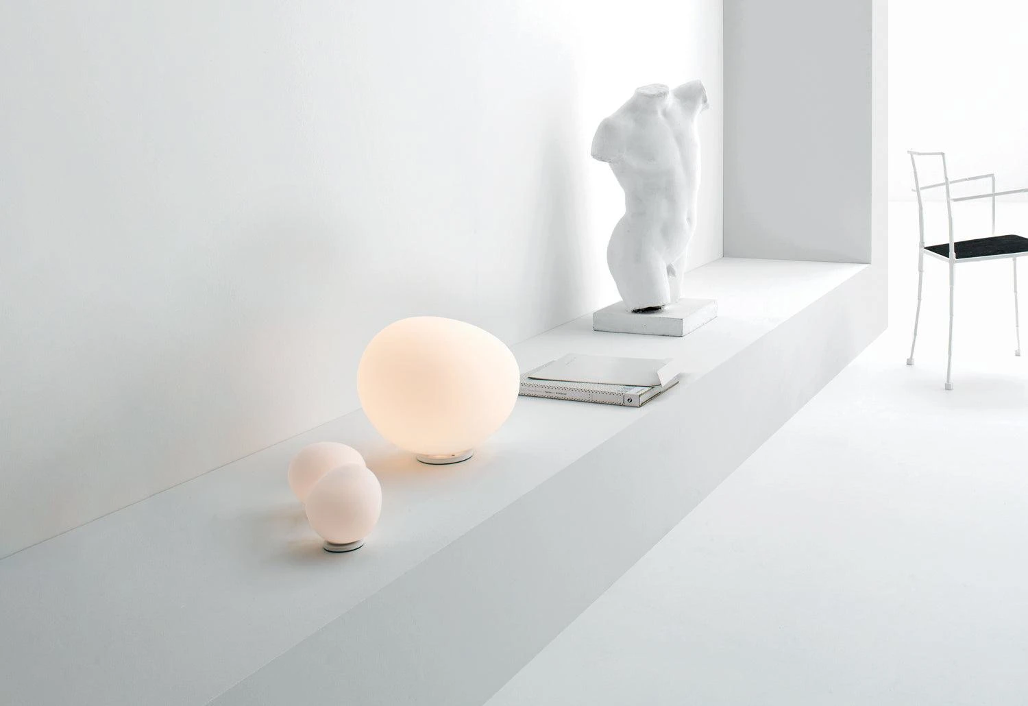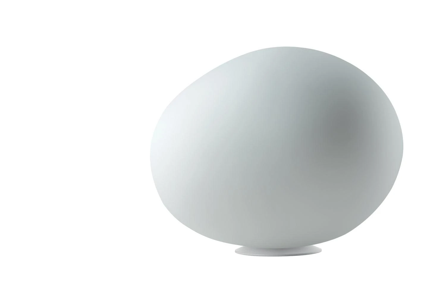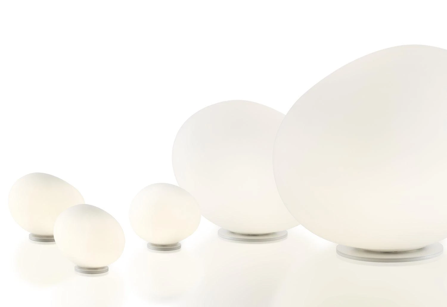 Designed by Ludovica and Roberto Palomba, Gregg is a table lamp in blown satin glass and white lacquered metal. It is available in three sizes.