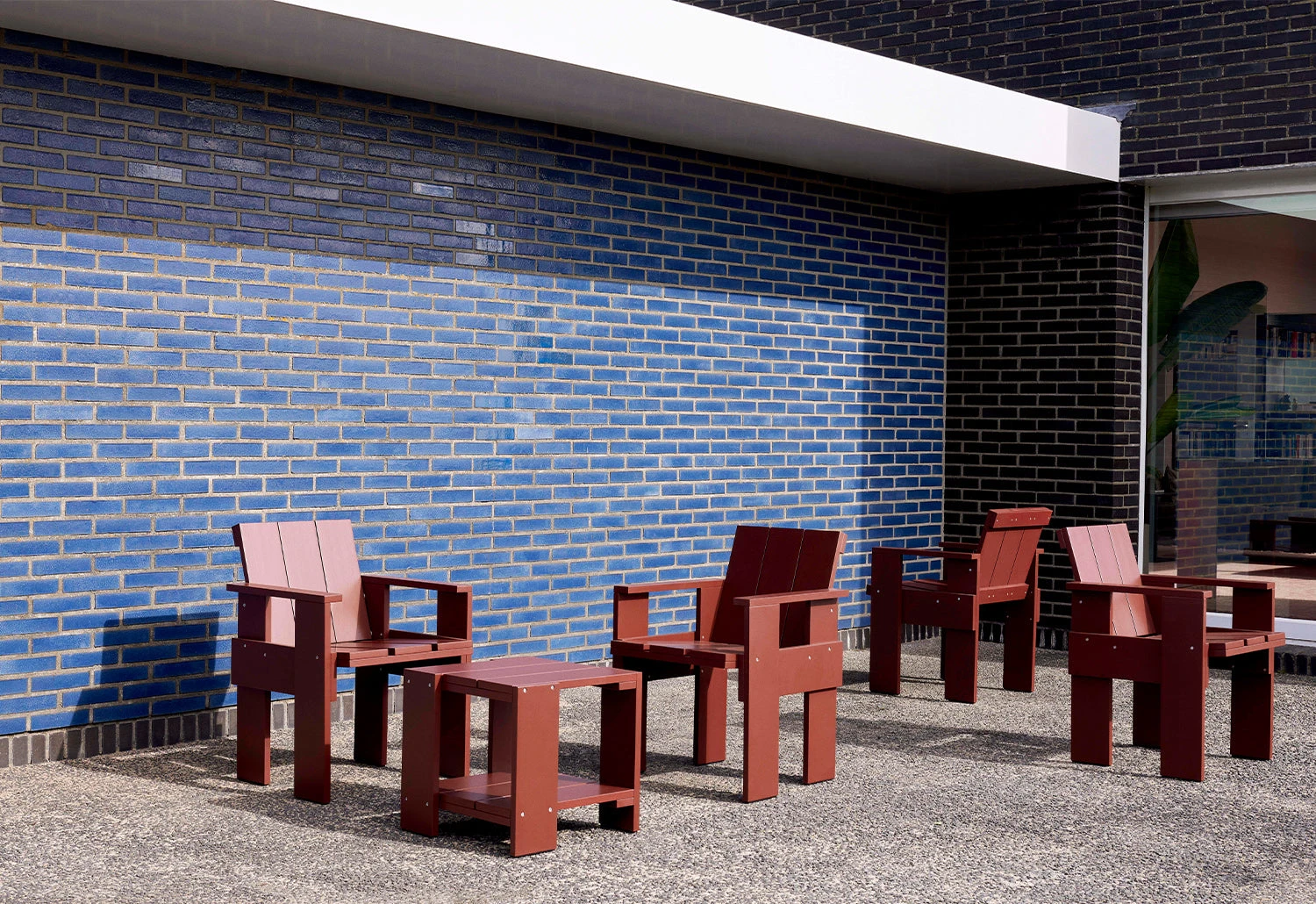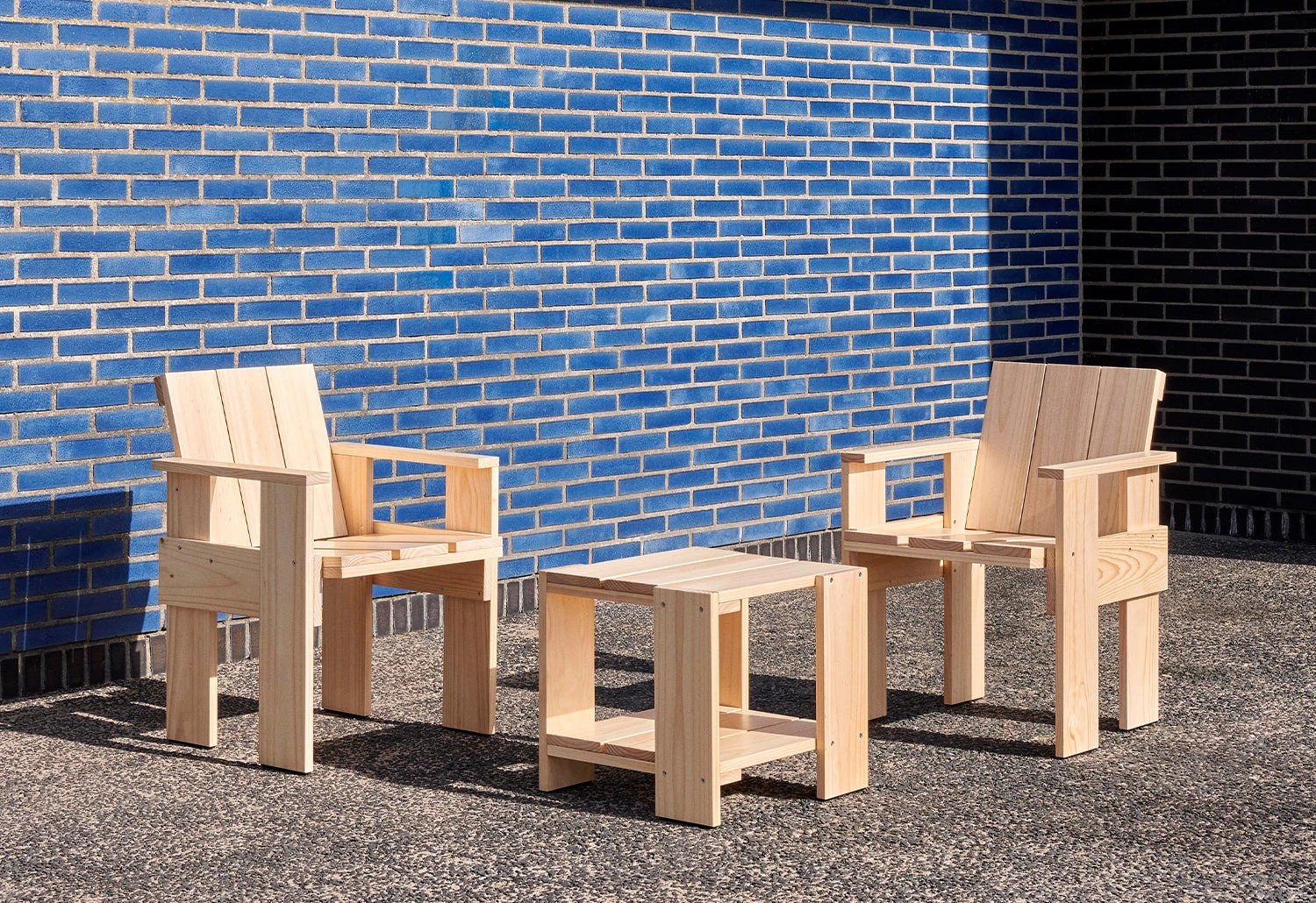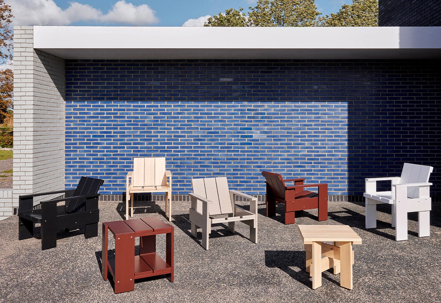 The Crate Collection has a rich history dating back to 1934. It was originally designed by the renowned Dutch architect and designer Gerrit Rietveld with the aim to create modern and functional furniture using surplus wooden crates. The collection still retains the designer’s aesthetic vision and precise proportions, with a simple and well-designed form. The collection includes a lounge chair, dining chair, low table, and side table, all made of solid pine and finished with a water-based coating. This makes the Crate Collection perfect for a variety of settings, both indoors and outdoors, from cafes and public spaces to private gardens.