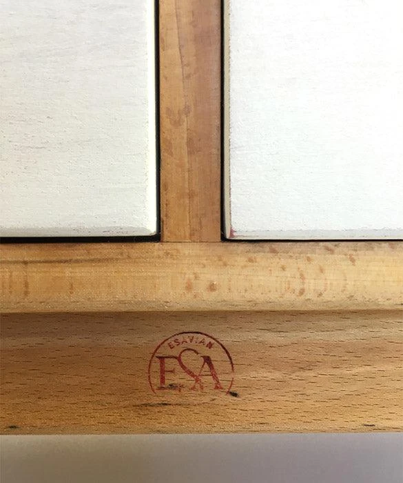 The partnership of James Leonard and Esavian is well documented through his earlier furniture designs in cast aluminium from 1948. The innovative production process of this range predates Prouve’s Compass series, which although similar in aesthetic utilised folded steel. Leonard’s aluminium-framed chairs, tables and desks in were published in Domus and several international design journals.