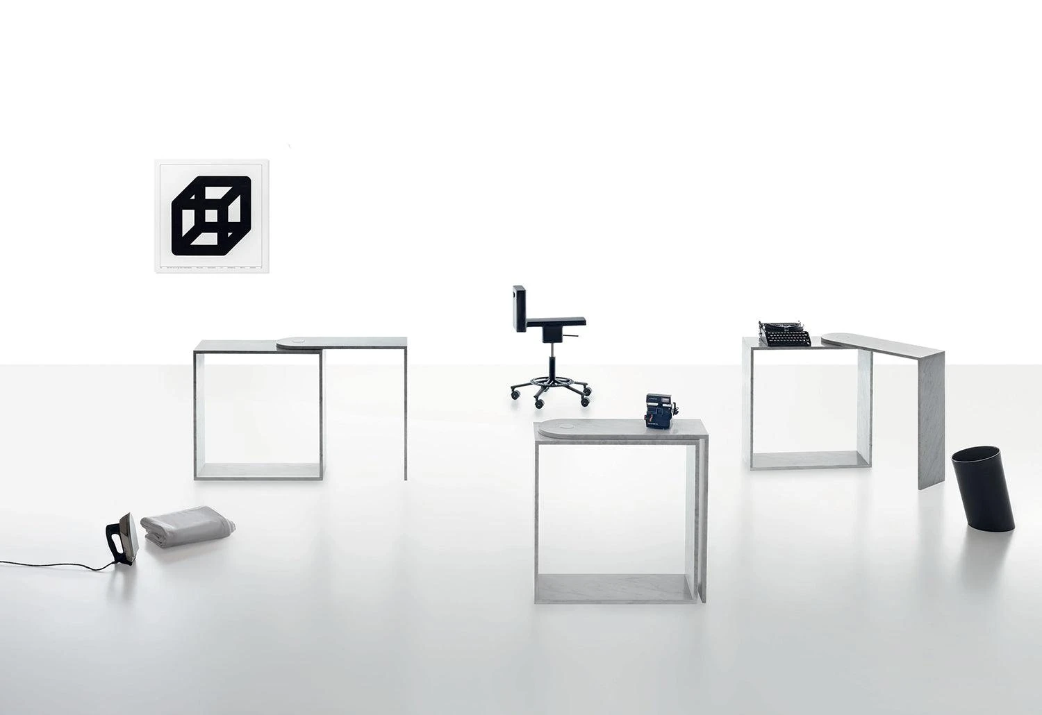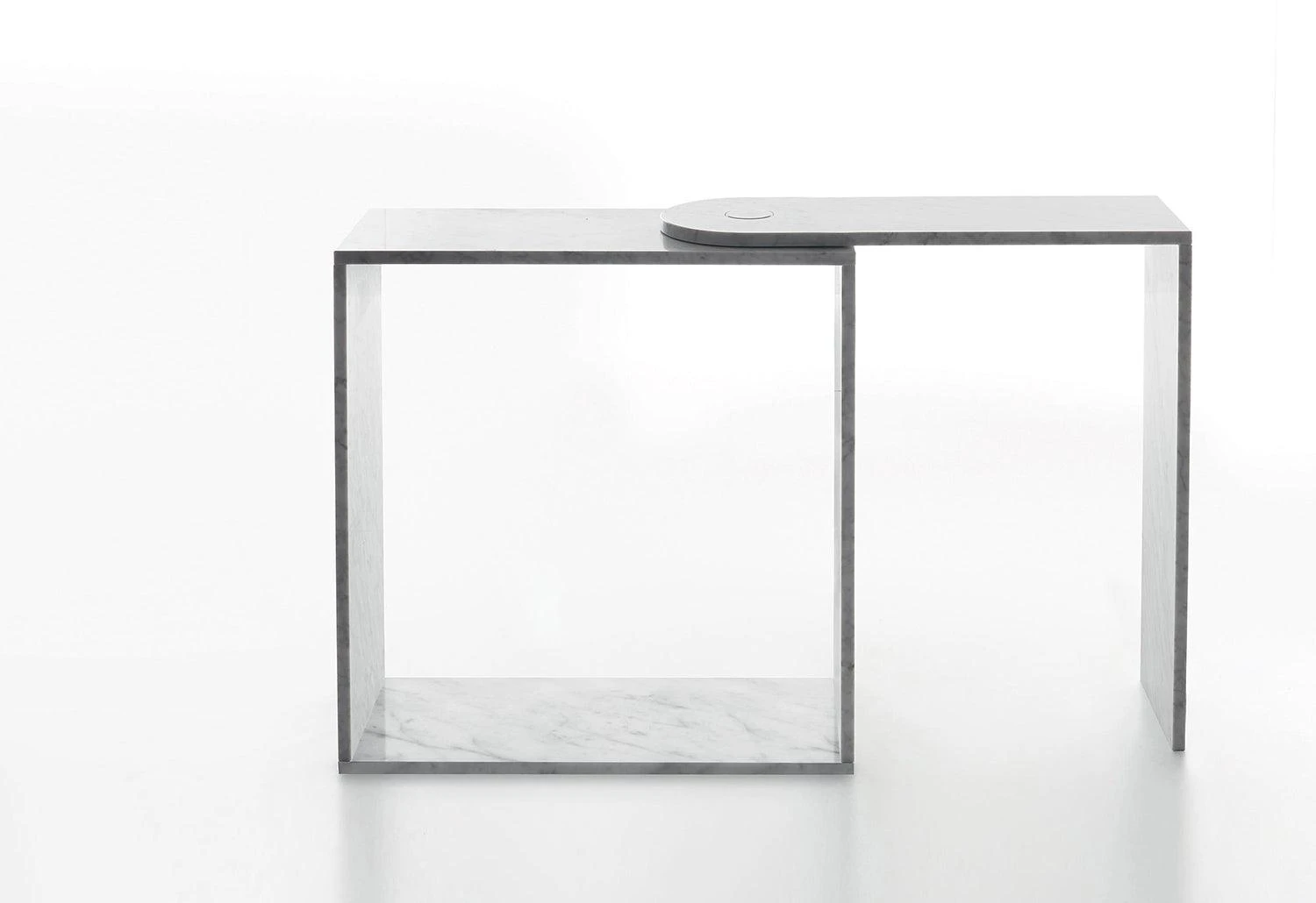 Desk/console with rotating top extension in a range of marble colours and finishes.
