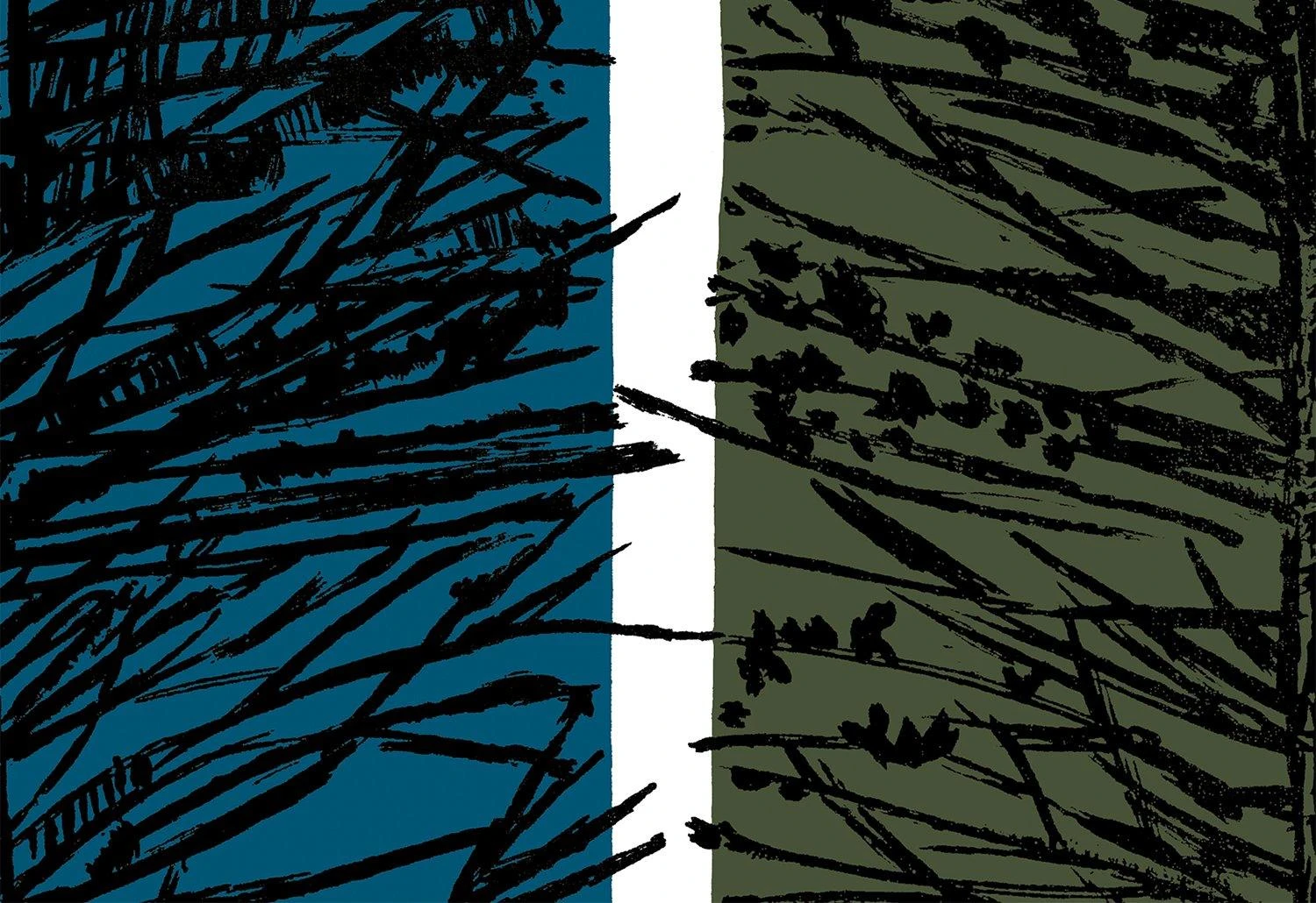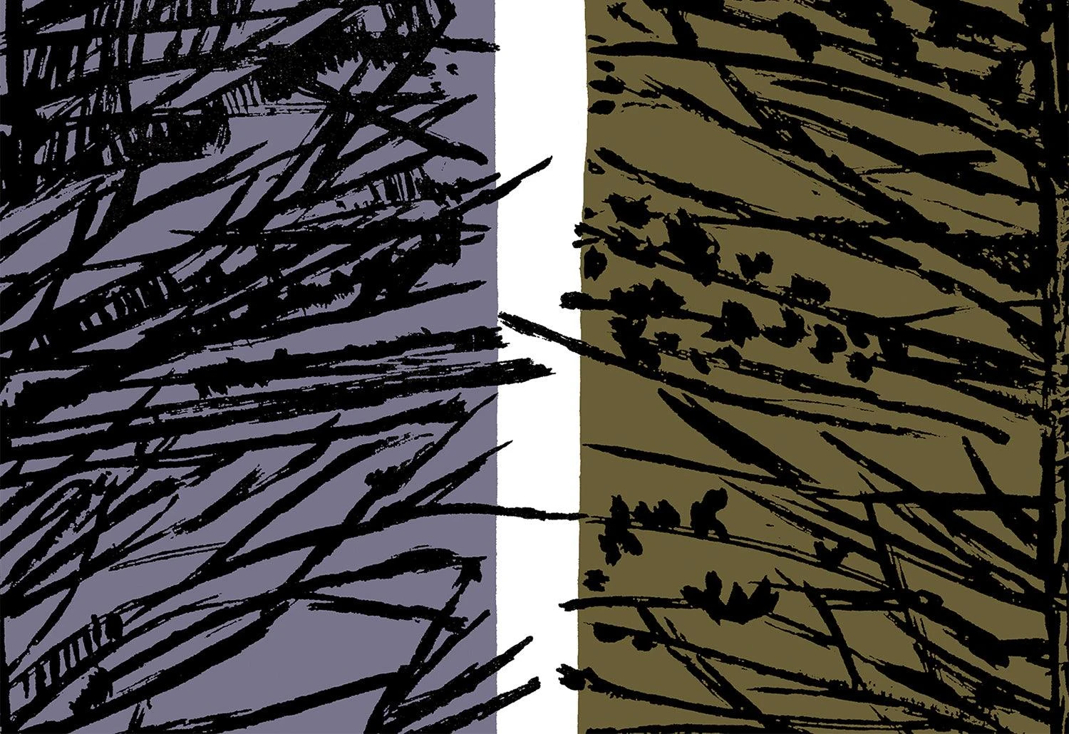 Lucienne, an avid gardener, was captivated by the form of plants. This fascination can be seen in her early designs, which often featured abstracted motifs of pods, stems, roots, flowers, petals, leaves, and seed heads, lending them a seemingly botanical quality. This is evident in Larch, which large-scale patterns of trees are divided into two distinct halves.