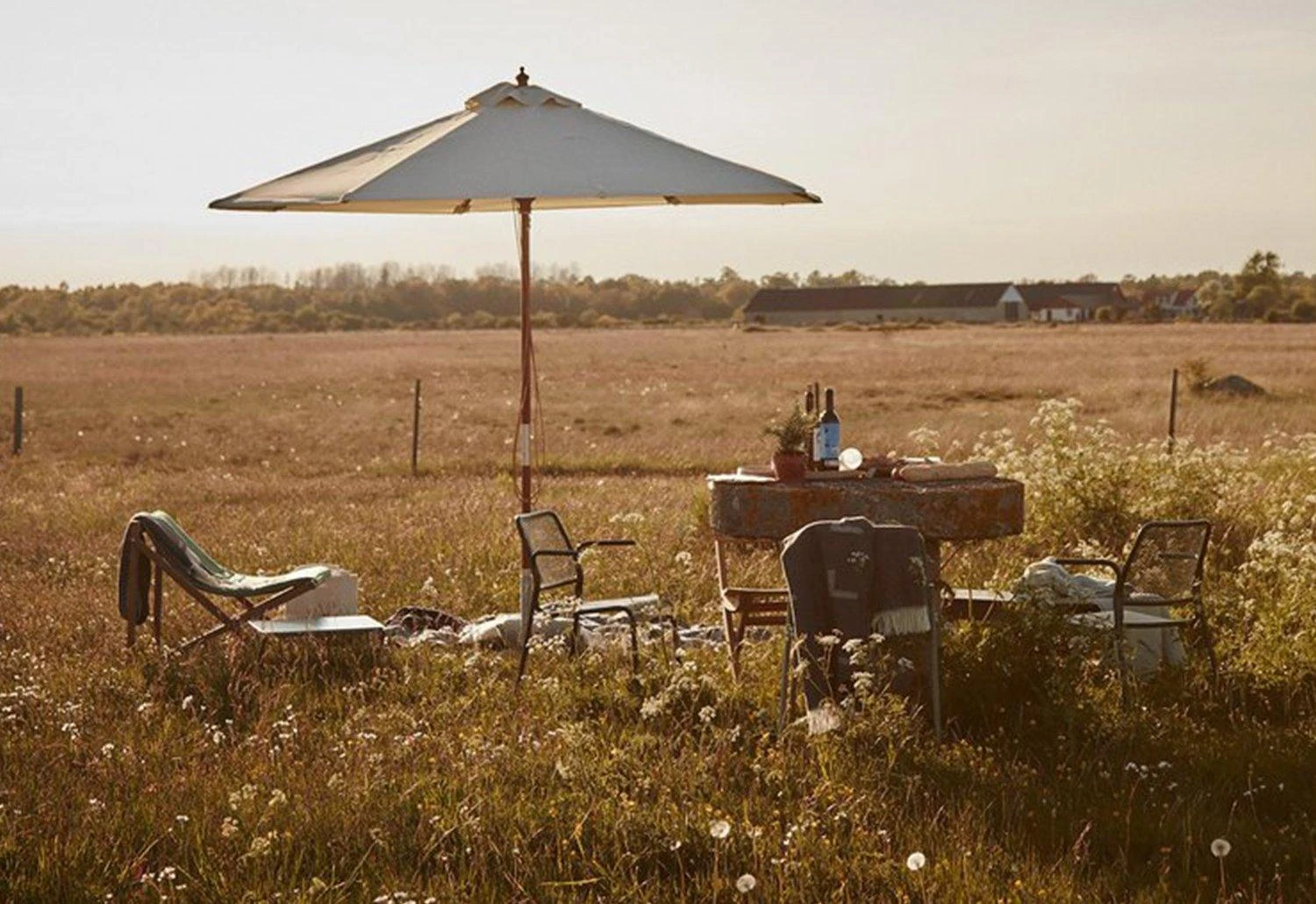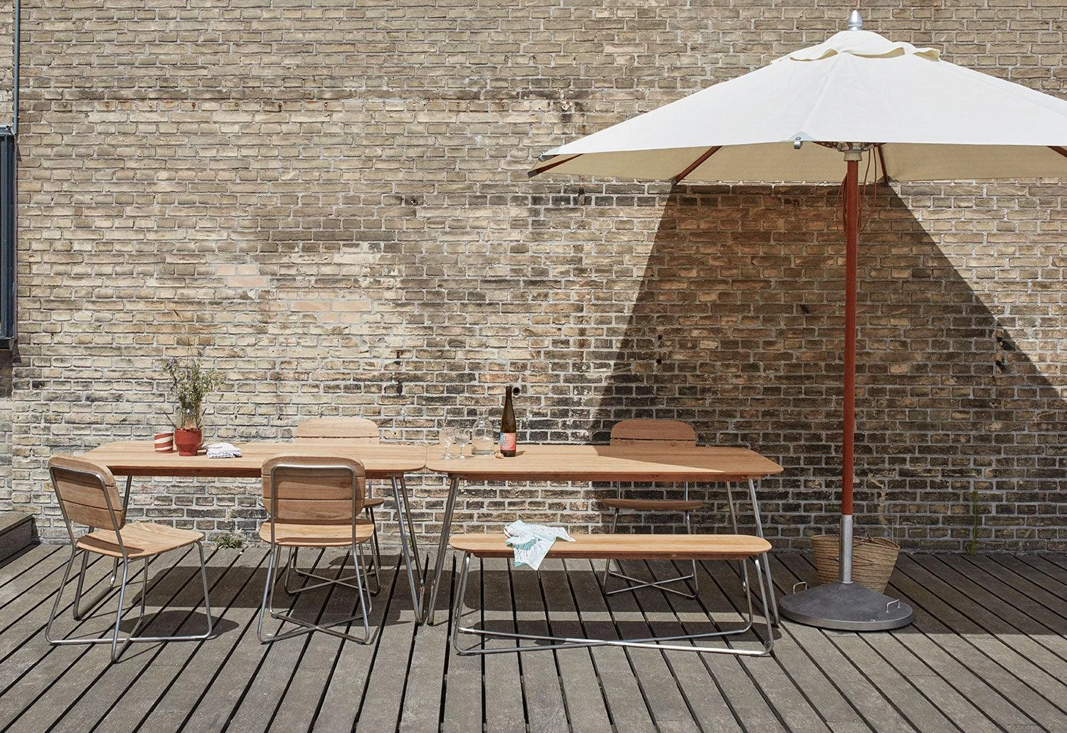 Kapur, a sustainable choice, is chosen for its strong and durable qualities. Available in three different sizes. The optional choice of 2 umbrella feet is available as a functional stabiliser for the parasol.