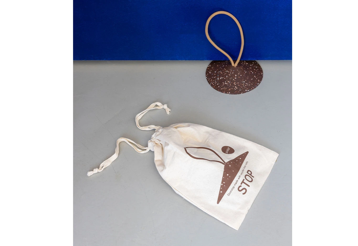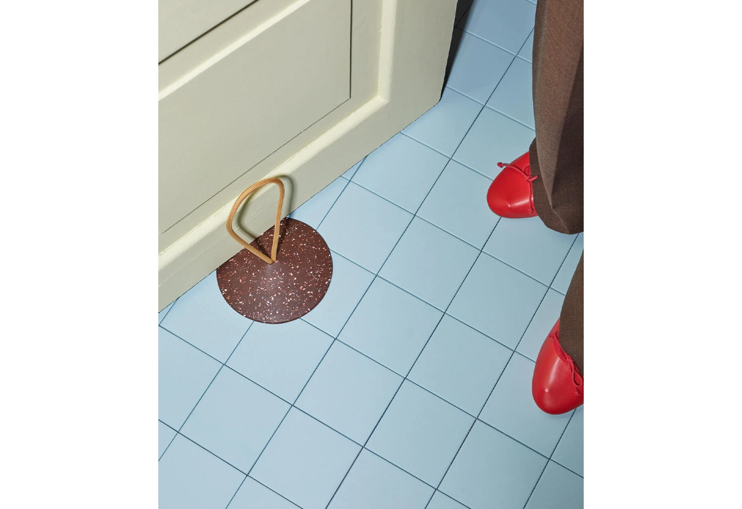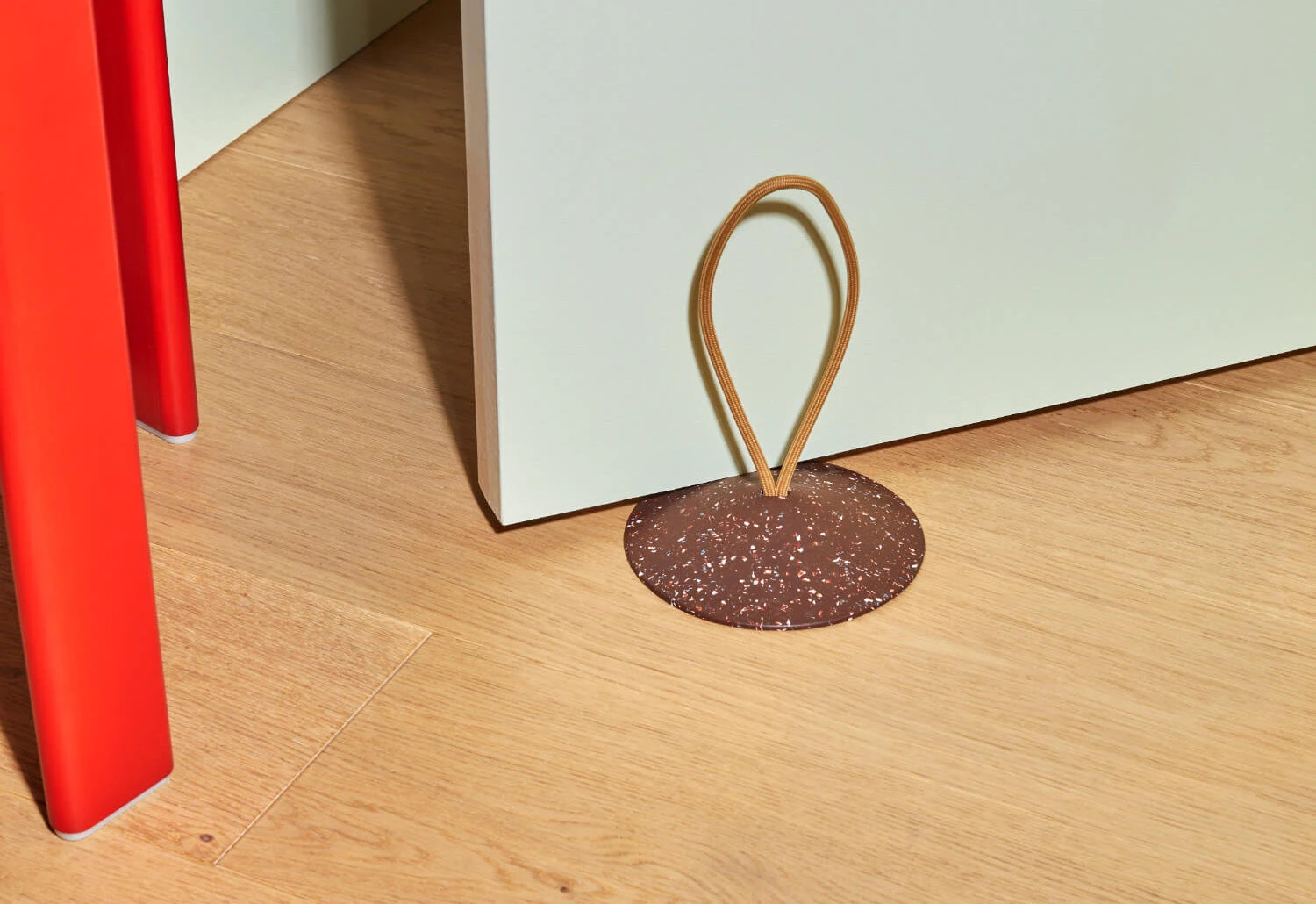 Unlike standard wedge-shaped doorstops, Stop has a unique flat-coned form, making it easier to use. The shape also means the doorstop is not hidden when in use, thus creating it an exciting design feature in your space.