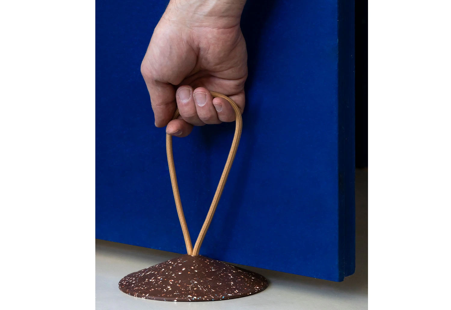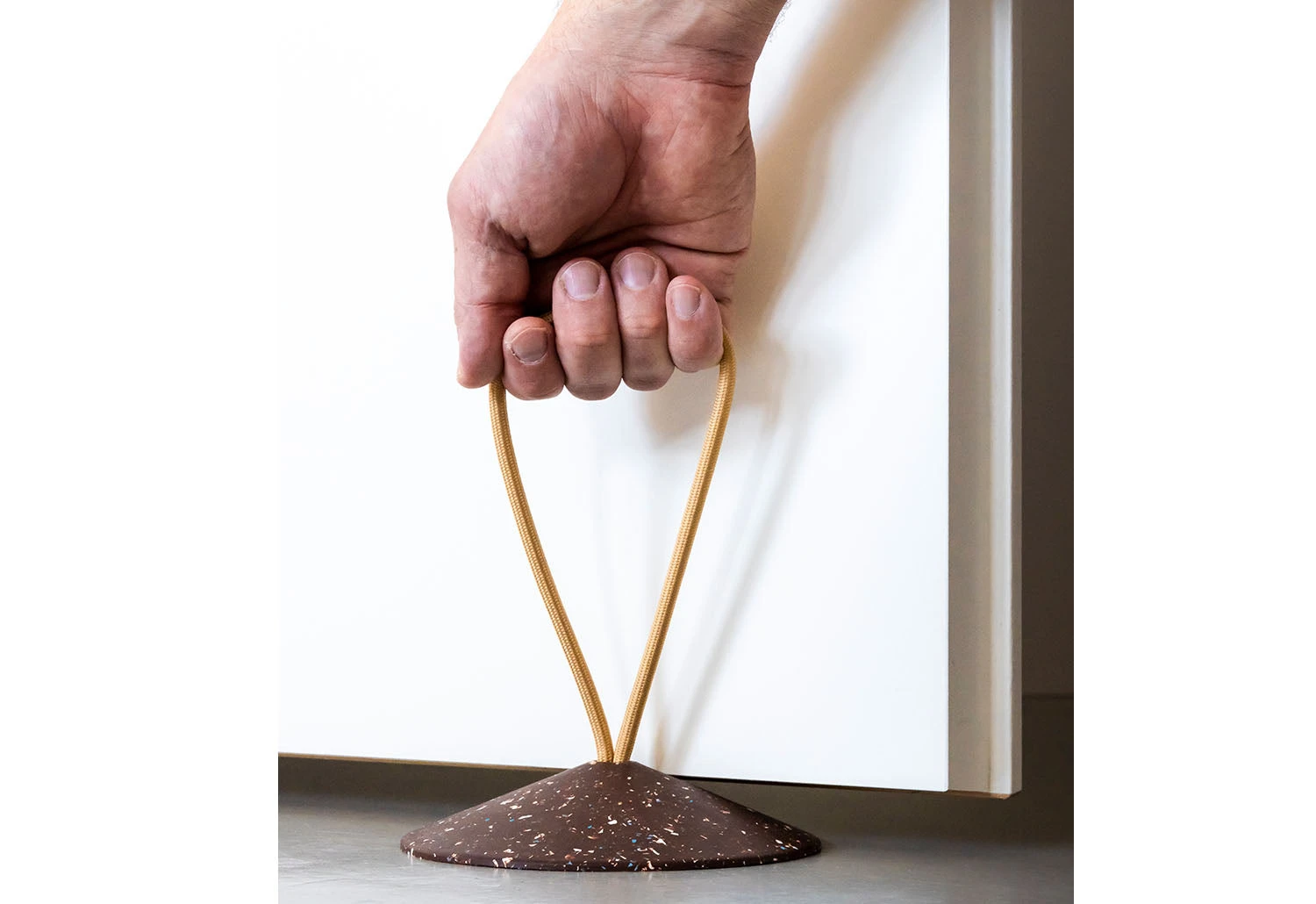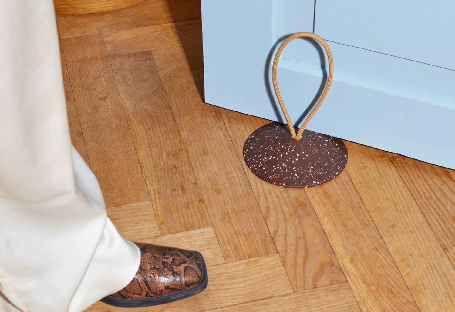 Designed by John & Wonhee Arndt of STUDIO GORM, Stop is an innovative doorstop made from discarded shoe soles. The studio chose the material due to its durable and slightly flexible properties, which are ideal for use as a doorstop.