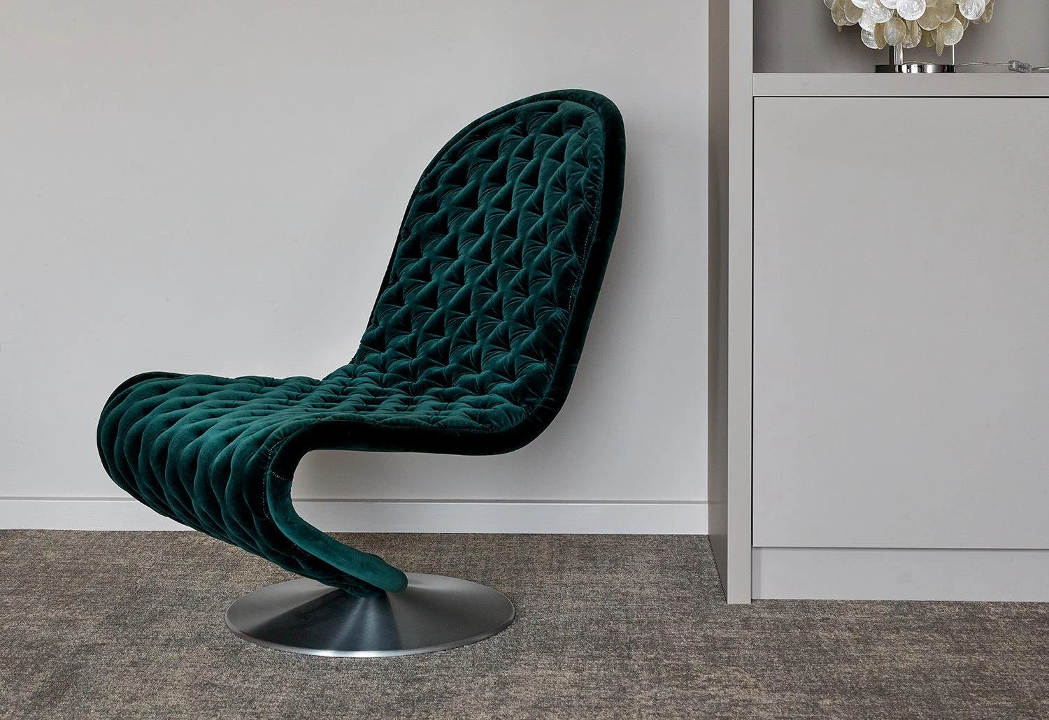 The System 123 lounge chair is a contemporary chair, with a characterful aesthetic. Designed to be comfortable and a statement piece, the System 123 has a unique style. Recognised by its S-shaped structure and quilted upholstery, this deluxe lounge chair is perfect for modern living.Â