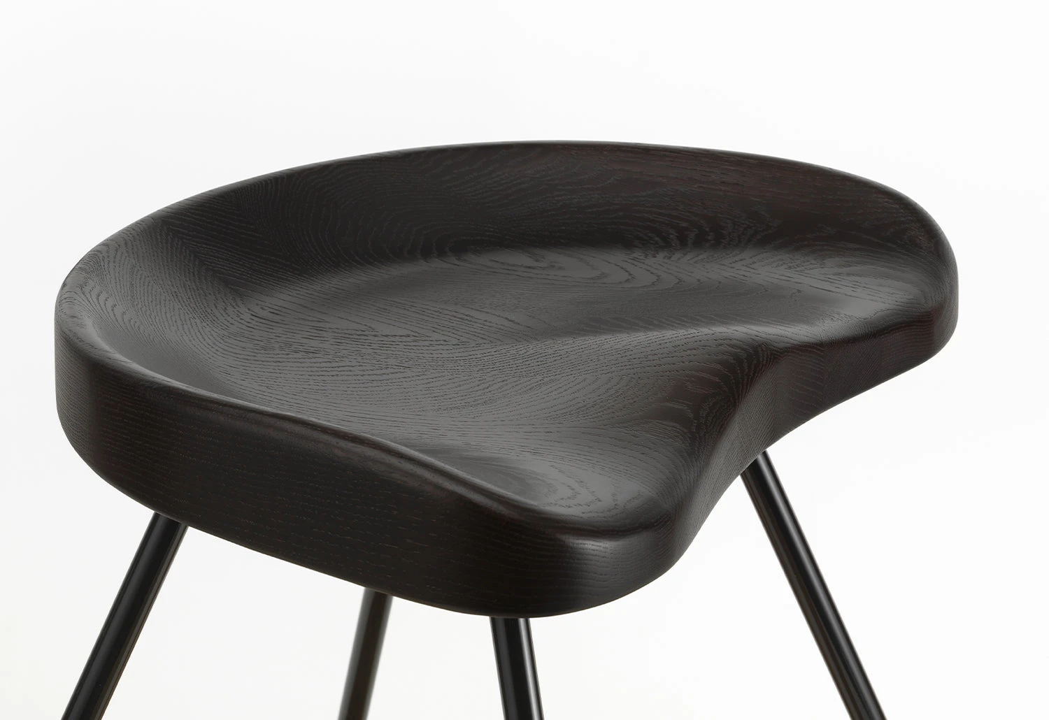 Developed by Jean Prouvé along with various other stools in the 1950s that he named with different numbers, Tabouret N° 307 is now available for purchase. The seat features a tractor saddle-like shape without holes similar to the seats in the lecture theatre he designed at Aix-Marseille University around the same time.